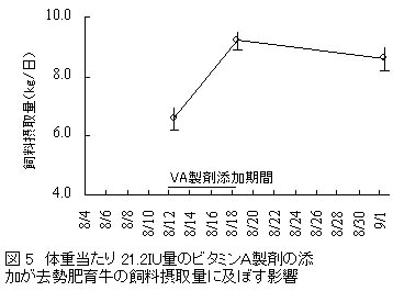 図5 体重当たり21.2IU量のビタミンA製剤の添加が去勢肥育牛の飼料摂取量に及ぼす影響