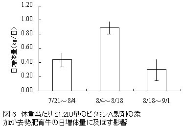 図6 体重当たり21.2IU量のビタミンA製剤の添加が去勢肥育牛の日増体量に及ぼす影響