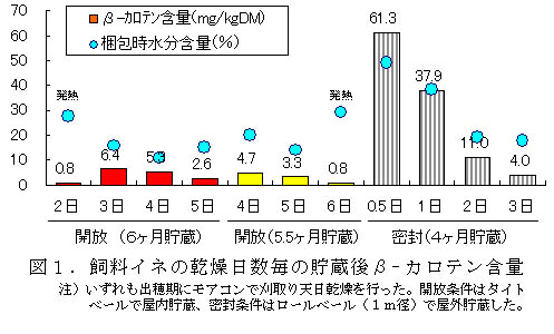 研究課題名:飼料イネの省力栽培および乾草調製技術の開発 飼料イネの乾草調製過程におけるβ−カロチン含量の推移と肉用牛への給与技術の確立 予算区分 :受託(21世紀プロ3系、ブランド・ニッポン3系) 研究期間 :2001年〜2005年度