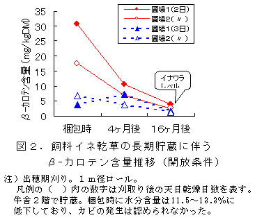図2 飼料イネ乾草の長期貯蔵に伴うβ−カロテン含量推移(開放条件)