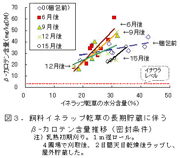 図3 飼料イネラップ乾草の長期貯蔵に伴うβ−カロテン含量推移(密封条件)