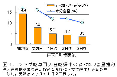 図4 ラップ乾草再天日乾燥中のβ−カロテン含量推移