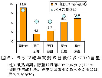 図5 ラップ乾草開封5日後のβ−カロテン含量