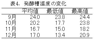 平均水温が摂氏16.7〜24.0度と低い条件下においても、C/N比が低く、滞留日数が60日間と長く保つことで、BOD等の有機成分の減少が確認される。(表3,表4)。