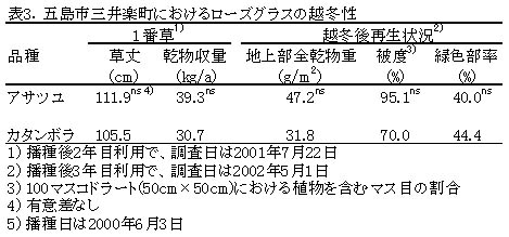 表3 五島市三井楽町におけるローズグラスの越冬性