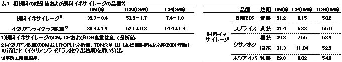 表1 粗飼料の成分値および飼料イネサイレージの品種等