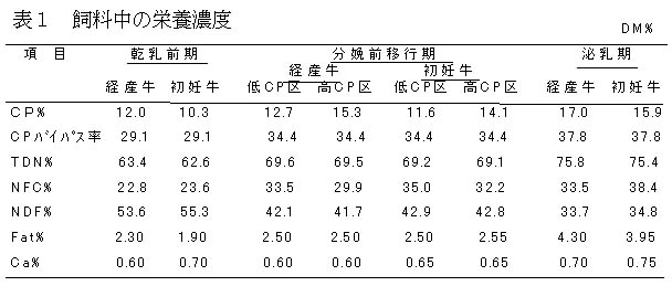 - 乳牛の分娩前移行期において、給与飼料の乾物中CP含量を経産牛で12%、初妊牛で14%とすることにより、繁殖成績に影響なく乳生産が維持できる。
