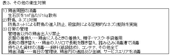生産現場で鶏舎が密集している場合は、風に乗ったゴミとともに進入する病原菌は防ぎようがないので、農場ごとのオールインオールアウトとの組み合わせで実施する。