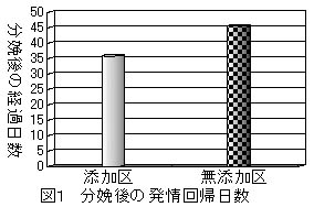 陰イオン塩添加区は無添加区に比べ発情回帰日数の短縮が認められる(図1)。