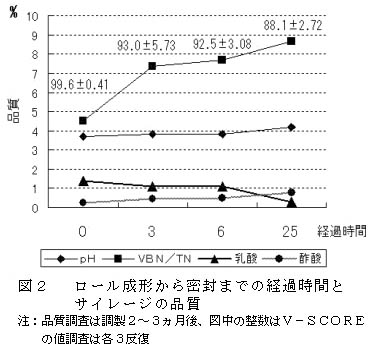 図2 ロール成形から密封までの経過時間とサイレージの品質