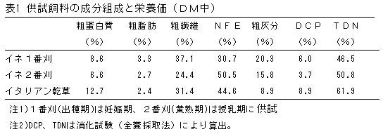 飼料イネサイレージと併用給与する牧乾草は良質なもの(CP12%、TDN60%程度)を用いる必要がある。