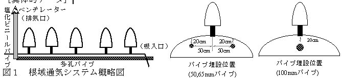 根域通気は地下部の換気・乾燥・排水を促進するため、水田等を含む排水不良が懸念されるところに導入し、乾燥しやすい園地では土壌水分管理に注意する。