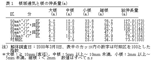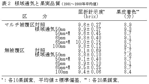 表2 根域通気と果実品質(2001〜2003年平均値)