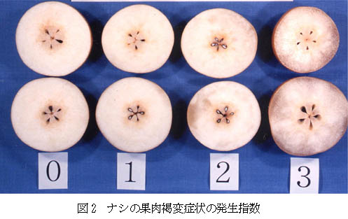 果実重700g以上では果肉褐変症状の発生が多くなる(表2)。