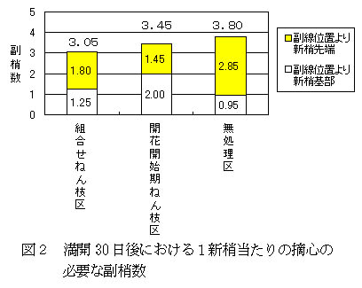 図2 満開30日後における1新梢当たりの摘心の必要な副梢数