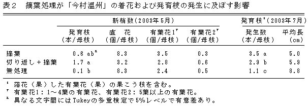 表2 摘葉処理が「今村温州」の着花および発育枝の発生に及ぼす影響