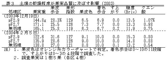 表3 土壌の乾燥程度が果実品質に及ぼす影響(2003)