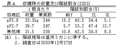 pF2.9区はpF2.7区に比べて階級割合の小玉果比率が高くなる(表4)。