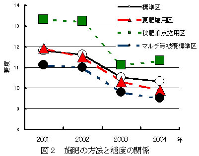 図2 施肥の方法と糖度の関係