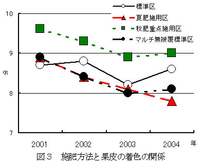 図3 施肥方法と果皮の着色の関係