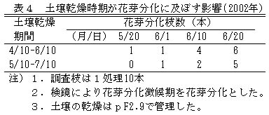 表4 土壌乾燥時期が花芽分化に及ぼす影響(2002年)