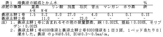 培土量:125l/ベッド、施肥量/ベッド:ロング100日タイプ(14-12-14)500g
