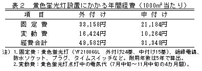 表2 黄色蛍光灯設置にかかる年間経費(1000m2当たり)