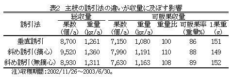 表2 主枝の誘引法の違いが収量に及ぼす影響