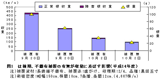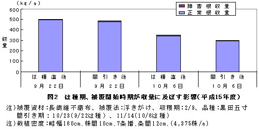 図2 は種期、被覆開始時期が収量に及ぼす影響(平成15年度)