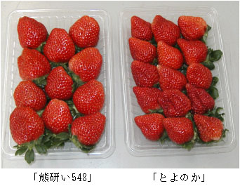 - 糖度が高く、果実品質が優れ、大果系で省力的な促成栽培用のイチゴ新品種「熊研い548」を育成した。