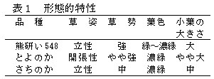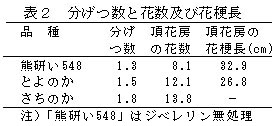 「熊研い548」は草姿が立性で、分げつ数と花房当たりの花数が少なく、摘果など管理作業が少なく省力的である(表1、表2)。