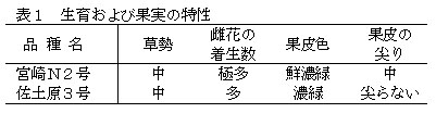 果実は果長が短く肩の張った紡錘形で、果色は“鮮濃緑色”である(表1、図1)。