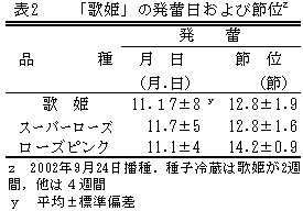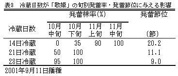 表3 冷蔵日数が「歌姫」の旬別発蕾率・発蕾節位に与える影響