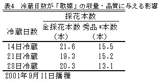 表4 冷蔵日数が「歌姫」の収量・品質に与える影響