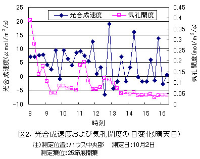 図2 光合成速度および気孔開度の日変化(晴天日)