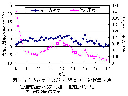 図4 光合成速度および気孔開度の日変化(曇天時)