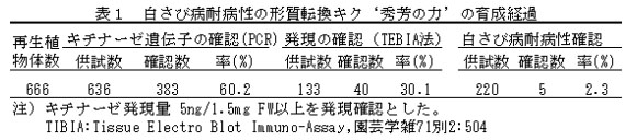 表1 白さび病耐病性の形質転換キク`秀芳の力'の育成経過