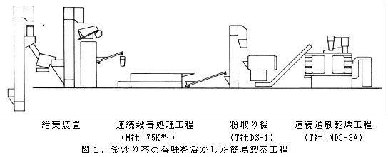 緑茶飲料等への需要に対応するため、釜炒り茶独特の香味を活かした新しいタイプの茶を、低コスト且つ短時間に得られる簡易製茶法を開発する。