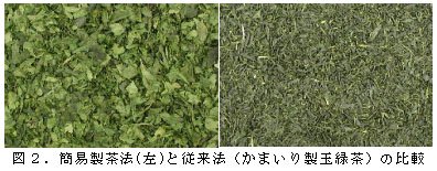 図2 簡易製茶法(左)と従来法(かまいり製玉緑茶)の比較