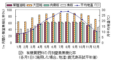 図1 有機質肥料の月別窒素無機化率