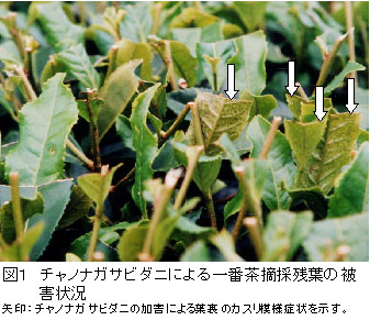 チャノナガサビダニによる一番茶葉の被害と二番茶芽生育への影響