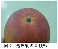 処理後、果梗部はやや黒色となるが外観的な果実品質の低下はみられない(図2)。