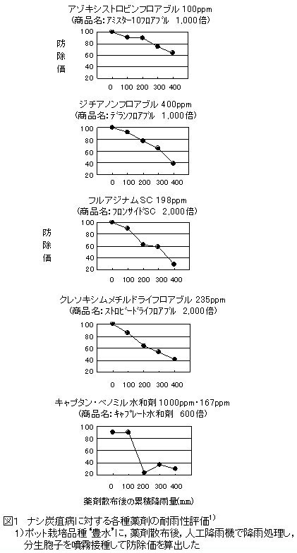 ナシ炭疽病(葉炭疽病)に対する有効薬剤と耐雨性