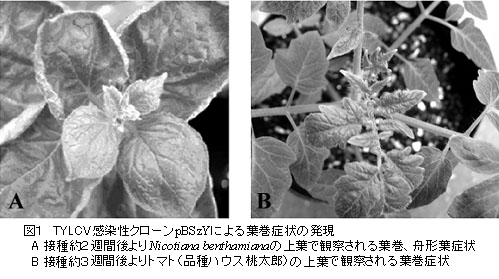 図1 TYLCV感染性クローンpBSzYによる葉巻症状の発現