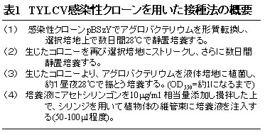 表1 TYLCV感染性クローンを用いた接種法の概要