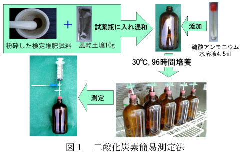 そこで、堆肥化物の二酸化炭素発生量を測定することによって、堆肥中の易分解性有機物量の多少を推定し、熟度を簡易に判定する方法を開発する。