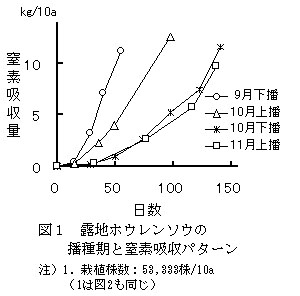 図1 露地ホウレンソウの播種期と窒素吸収パターン