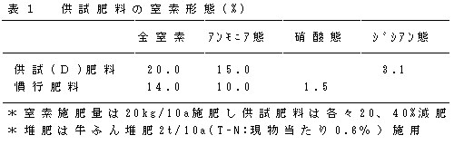 表1 供試肥料の窒素形態(%)
