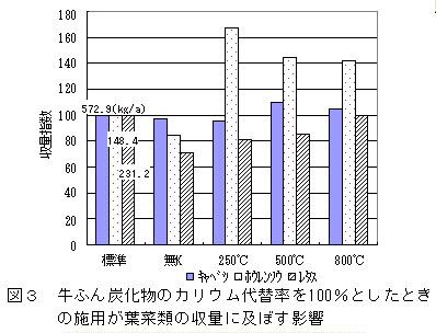 図3 牛ふん炭化物のカリウム代替率を100%としたときの施用が葉菜類の収量に及ぼす影響