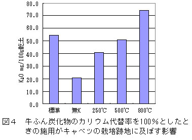 図4 牛ふん炭化物のカリウム代替率を100%としたときの施用がキャベツの栽培跡地に及ぼす影響